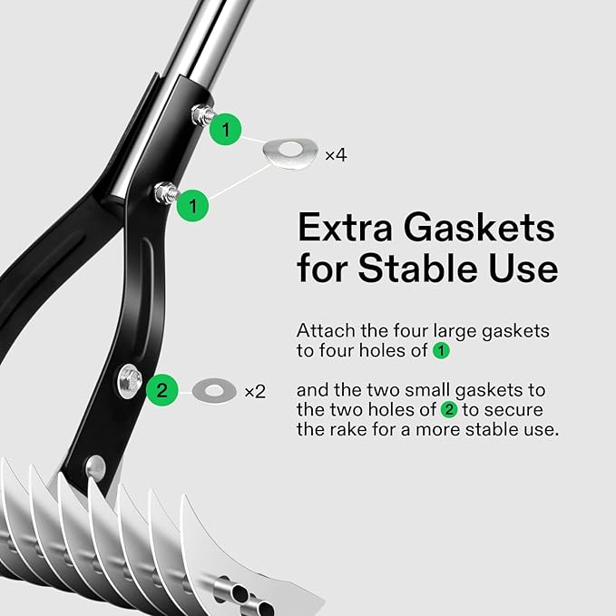 - Easy Assembly & Storage: With a sectional pole design, this dethatching rake allows you to adjust the length to your desired preference by connecting the required number of poles; It can also be easily disassembled for space-saving storage and effortless cleaning
