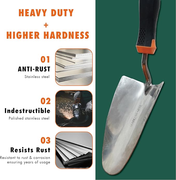 - 【Large Heavy Duty Gardening Tool 】Compared to other aluminum gardening tools, this 304 stainless steel tool of ours is longer and bigger for easier use, won't bend or break, and can quickly tackle any challenge in gardening.