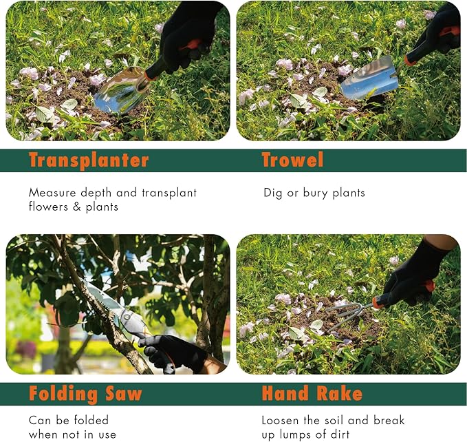- 【An Excellent Gift For Women and Men】Surprise your friends, family, hobbyists and gardening enthusiasts with this complete 8-piece set of garden tools for gardening and be sure that you will make a lasting impression! Ideal gardening gifts for women and men on a birthday, anniversary, Easter, Christmas, Father’s Day, Mother’s Day, holiday and other special occasions!