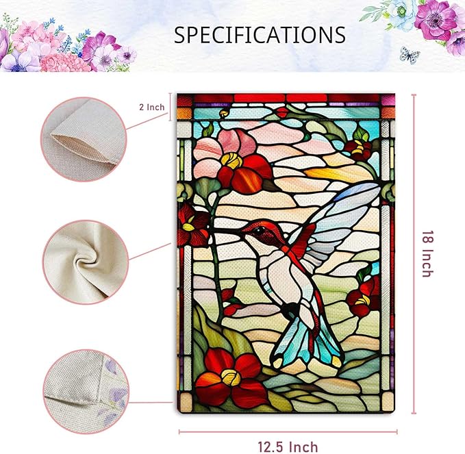 Spring Summer Hummingbird Garden Flag Glass Style Garden Flag Vertical Double Sided Rustic Farmland Burlap Yard Lawn Outdoor Decor 12.5x18"