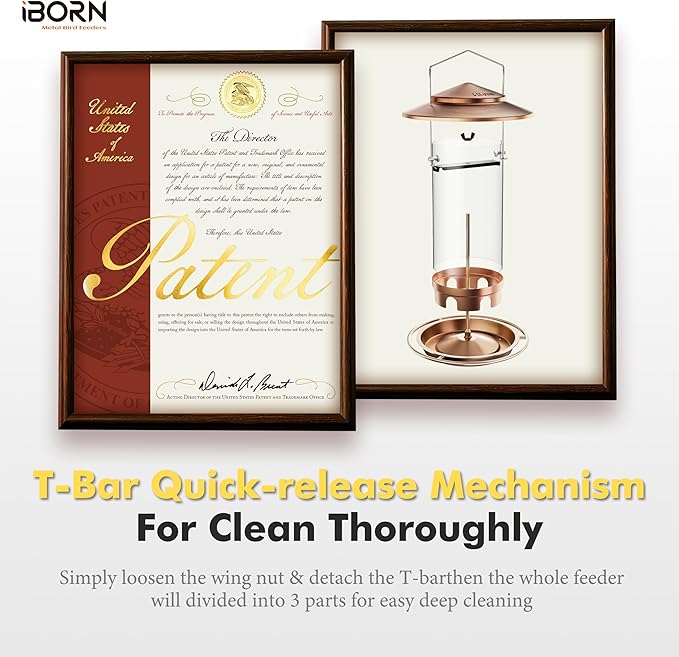 - 【2.8lb Large Capacity&Port Control Seeds Flow,Fill Once a Week】iBorn Large Capacity Bird Feeder Holds up to 2.8lb of seed,reduce the number of regular fills.With right size of each port control seeds flow into the tray.Reduce excess seeds waste and make it easier to fill once a week.