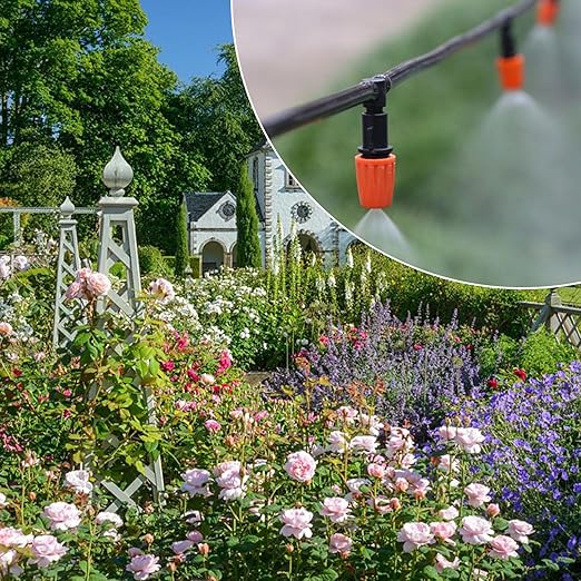 - Versatility: The automatic irrigation kit is versatile and can be used for misting, lawn irrigation, courtyard watering, roof cooling, agriculture, vegetables, greenhouses, flower beds, and even swimming pool mist cooling irrigation.The automatic nature of the system simplifies the irrigation process, making it convenient for various applications.