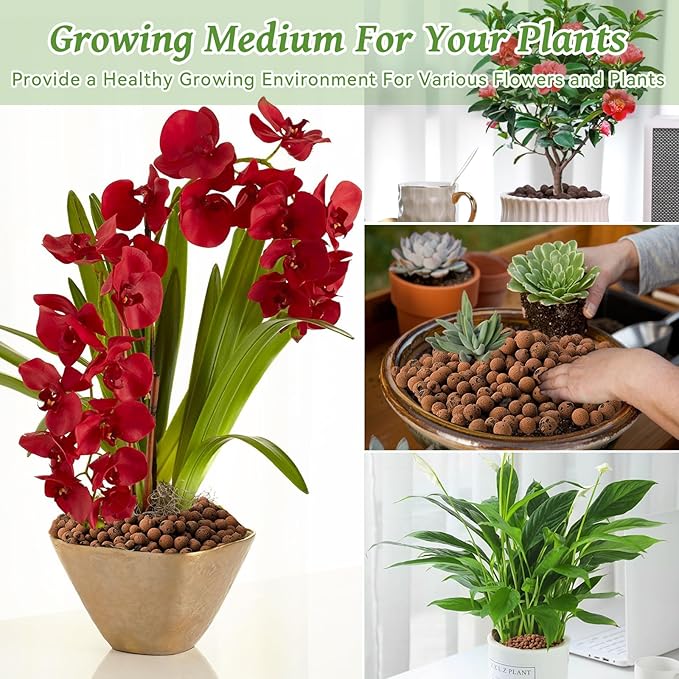 • Wide Application: Our natural expanded clay pebbles is excellent grow media for plants, which great for orchid, succulent, cactus and olive tree. Also, lightweight clay pebbles are perfect for soilless culture, hydroponic gardening, aquarium substrate, fish tank, pot decoration