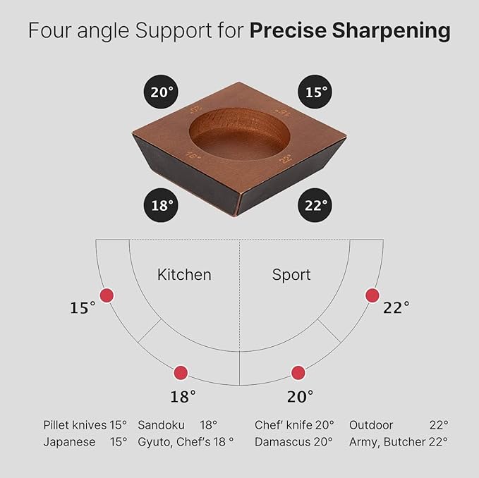 - 15, 18, 20, 22 Degrees Magnetic Angle: Do you know that different types of knives have different sharpened angle treatments? Designed with 4 kinds of Grinding Angle, HADANA Rolling Knife Sharpener is able to sharpen any kind of knives.