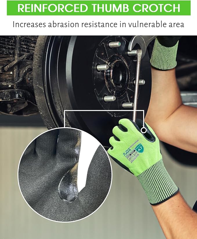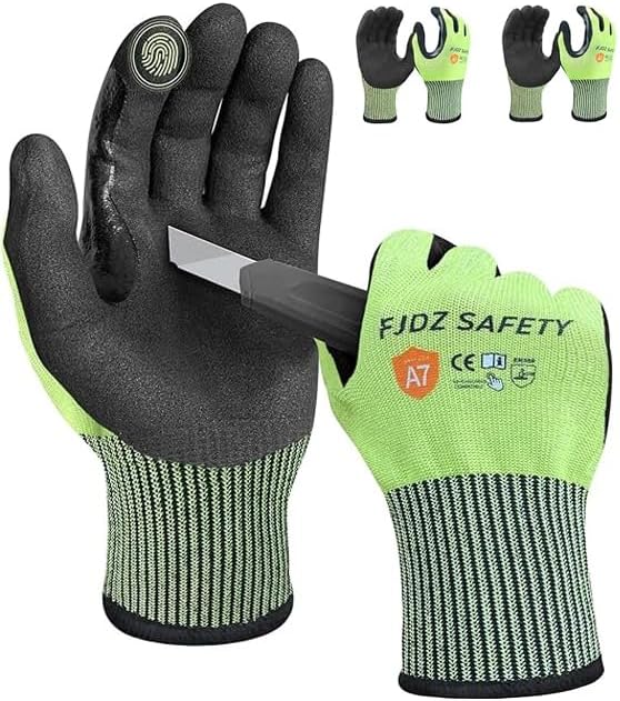 - Ultimate Cut Protection – ANSI A7 Certified: Industrial-grade HPPE, fiberglass, and stainless steel blend provides 360° cut resistance, shielding hands from blades, sharp edges, and punctures during heavy-duty work