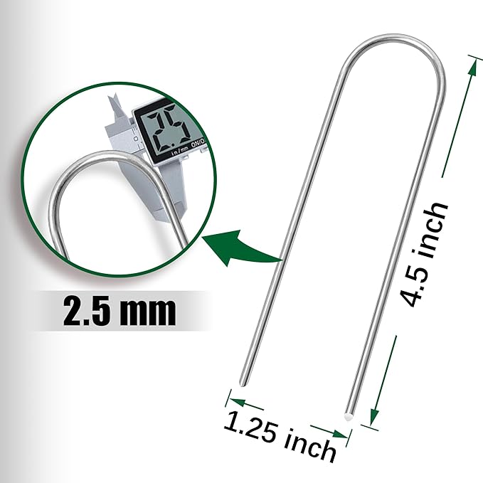 - 【Multi Purpose】The metal landscaping stakes are geat for fixing drip irrigation tubing hose, chicken wire, outdoor decoration, landscape fabric, plant cages, dog fence and so on.