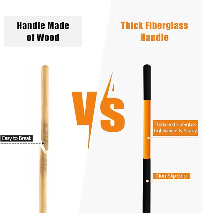 - High Quality Material: The handle of the heavy duty pitchfork made of thickened fiberglass material, which is lightweight, sturdy and not easy to break. The garden fork head is made of high quality carbon steel, which is sturdy and not easy to deform. The surface of the pitch fork for compost head is coated with rust-resistant coating, so it is not easy to rust even when it is used in a humid environment.