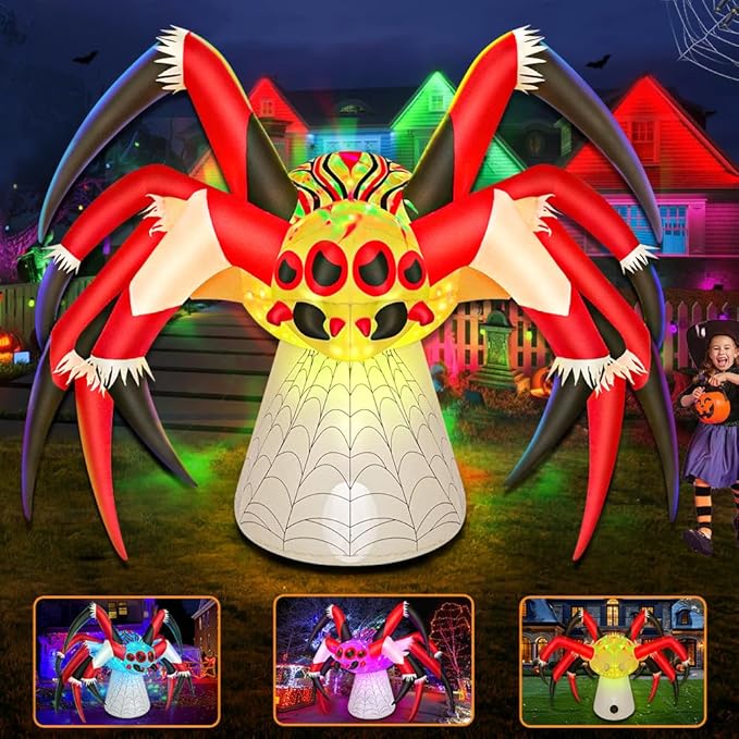 - 【Halloween Decorations Outdoor】: These inflatable Halloween decor are designed specifically for Halloween Holiday/parties/carnivals/festivals, so easy to add character to your outdoor Halloween decor. Perfect Halloween blowups for yard, front porch, patio, mall, party. Can't not wait to put inflatable halloween decorations spider for Halloween.Your neighbors will love it! Trick or treat event decoration, festive night event. Enjoy and hi up!