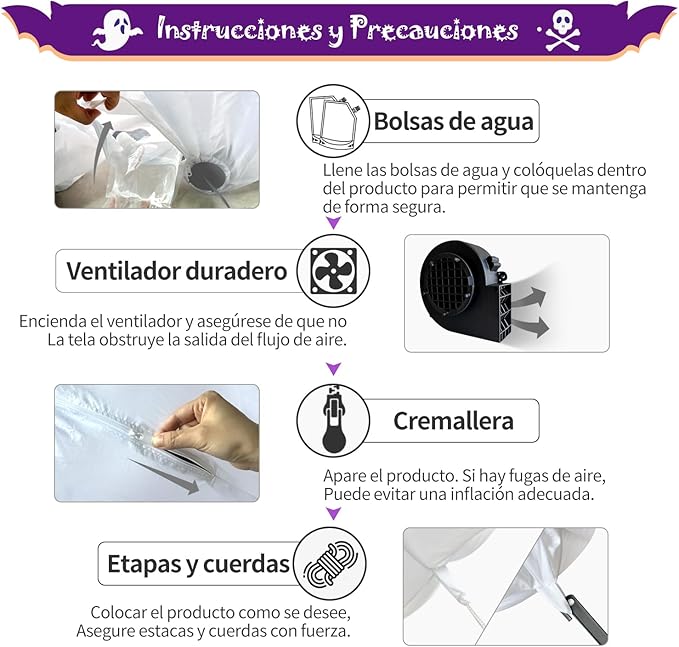 - 【Simple Setup And Storage】: Self-inflates and deflates, Just plug in this Dia de Los Muertos inflatable built-in fan and fix it on the ground. It will be inflated in a few seconds and everything pops up in an instant! For better stability, put in water bag and fixed rope by stakes, Don't worry about inflatable will be blown away by the wind.