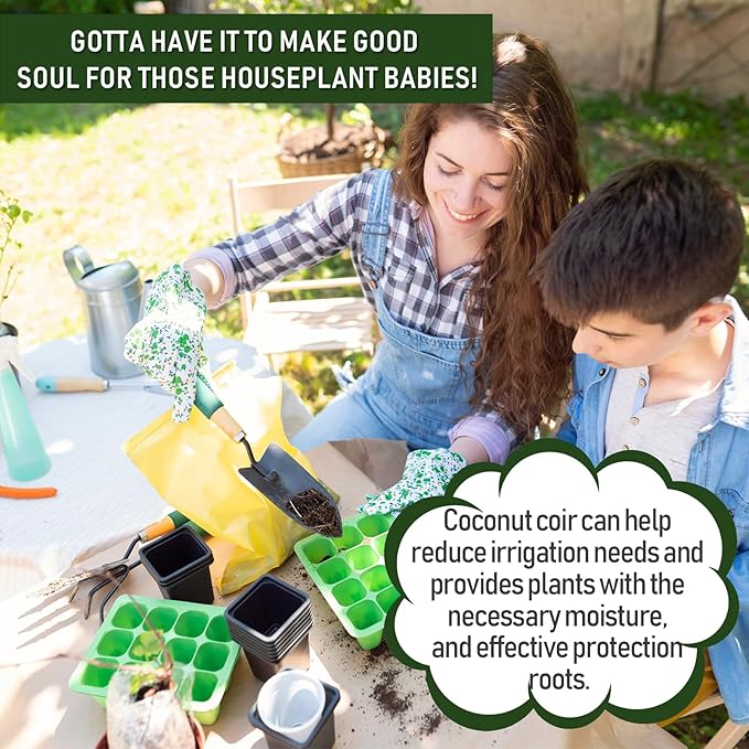 - Say Goodbye to Lackluster Growth: You can try using coconut fiber to make your own seed-starting mixture, and they help keep perfect soil moisture, also add to the seedling soil mixture. Coco fiber can be used to create potting mixes, blended with other ingredients such as peat moss, perlite, vermiculite, etc. This mixture provides good drainage, aeration, and water retention, ensuring ideal growing conditions for potted plants.
