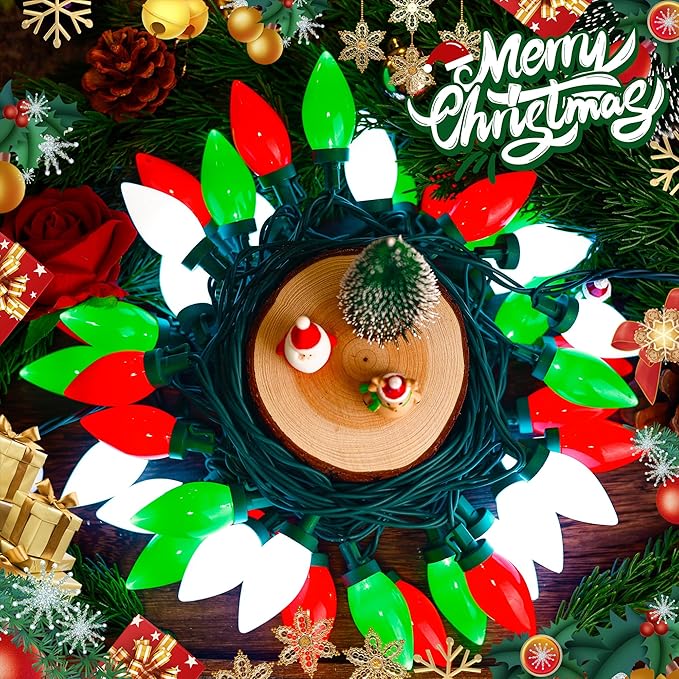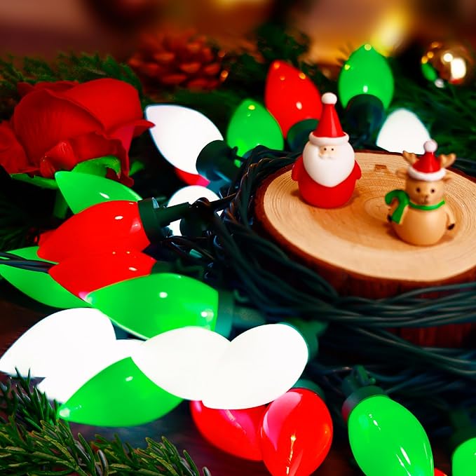 HAYATA C9 Big Bulbs Classic Christmas Lights 50 LED 32ft Strawberry String Light - Outdoor, Indoor, Garden, Yard, Party, Home, Wreath, Garland,Tree (Red White Green - 50LED)