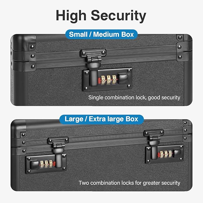- Dual Lock for Child Safety: The Vilcjson large lock box features a dual lock system to prevent children and pets from accessing sensitive items like meds, files, and small valuables. Our lock boxes are Perfect for home office needing extra secure