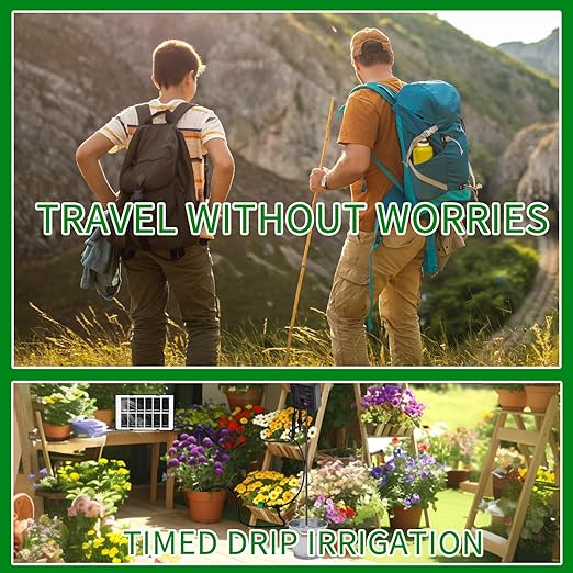 - Travel Without Worries: The automatic solar garden watering system is powered by solar panels. Make sure the solar panel under the sun and prepare enough water, schudule the water mode according to your plants' needs, then you can enjoy your vacation.