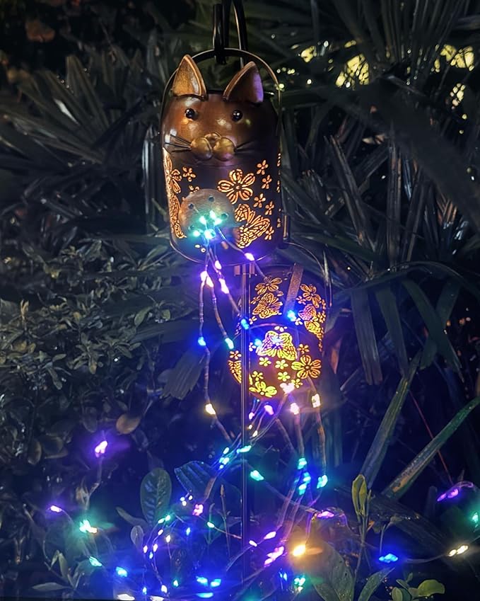 - Upgraded Colorful Solar Watering Can: Elevate your outdoor ambiance with our multicolored Cat-shaped hanging solar lantern featuring 8 light modes and 4 color LED strings, casting a starry glow as if pouring out a constellation. The warm yellow light filters through the exquisite cut-out design, creating a cozy and artistic atmosphere for memorable nights with family and friends