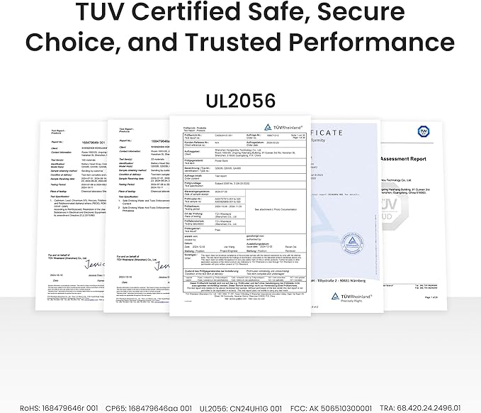 - Safe and Reliable Materials: Built with high-quality battery cells and advanced charging system; multiple layers of protection including NTC and UL certifications; materials rigorously tested in TUV lab for safety and durability