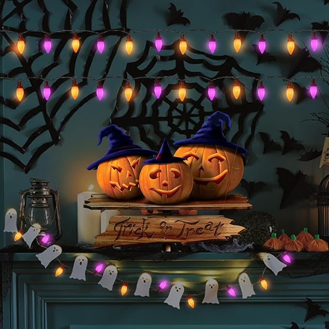 - Charming Christmas Lights: Halloween lights is suitable for indoor/outdoor lighting applications. Fits great for home, porch, roof, garden, patio, pathway, balcony, bathroom, tree, fences. Perfect for holiday, birthday, festival, haunted house, Halloween party decoration
