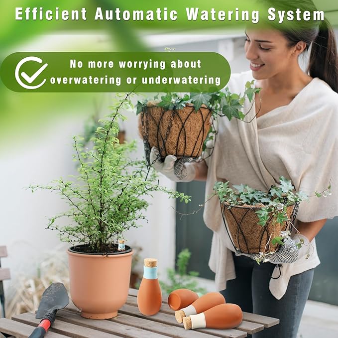 - 🌵Easy to Use and Maintain: With its user-friendly design, the self watering planter insert allows for hassle-free setup and maintenance. Simply fill the pot with water and insert it into the soil near your plants. The porous nature of terracotta gradually releases water, providing a slow and steady irrigation process that requires minimal effort on your part.