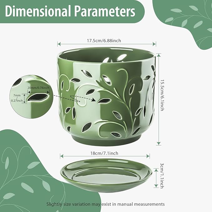 • Lighting Up Life: With delicate leaf cutouts and a unique green glaze, our orchid pot is not only a home for your plants but also a piece of home decor art. It not only enhances ventilation but also complements the beauty of the orchids, exuding elegance from every corner.