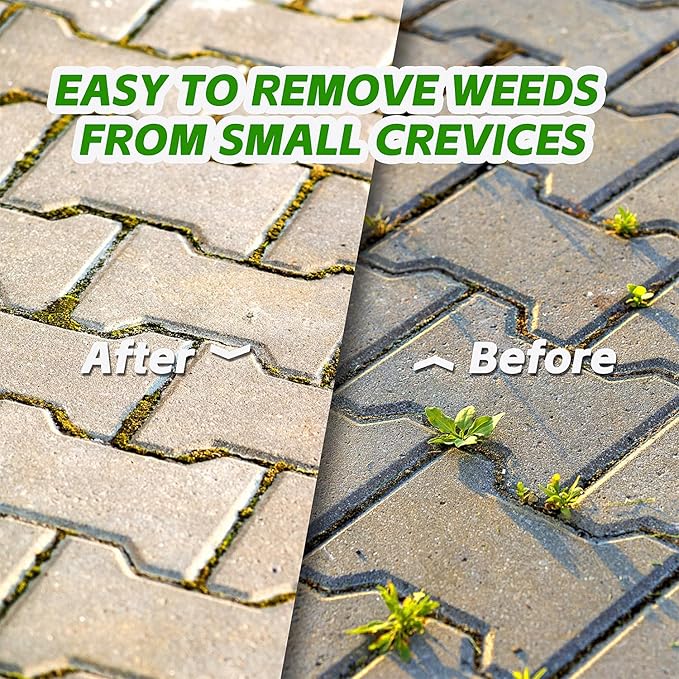 - Crevice Weeding Tool - L-shaped stainless steel hooked blade for cutting sod in different directions. The blade's shape works well to detach and remove sod from soil, and to remove weeds from sidewalks, driveways, and other surfaces. So all weeding approaches are catered for!
