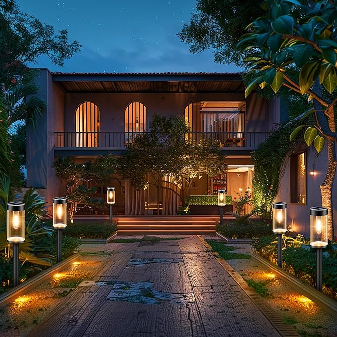 - Warm White & Romantic Lighting: With filament bulbs, the solar lights outdoor emits a softer and warmer light. Fully transparent lampshade with high light transmittance, the solar path lights can create a more charming lighting effect, making a yard bright and cozy