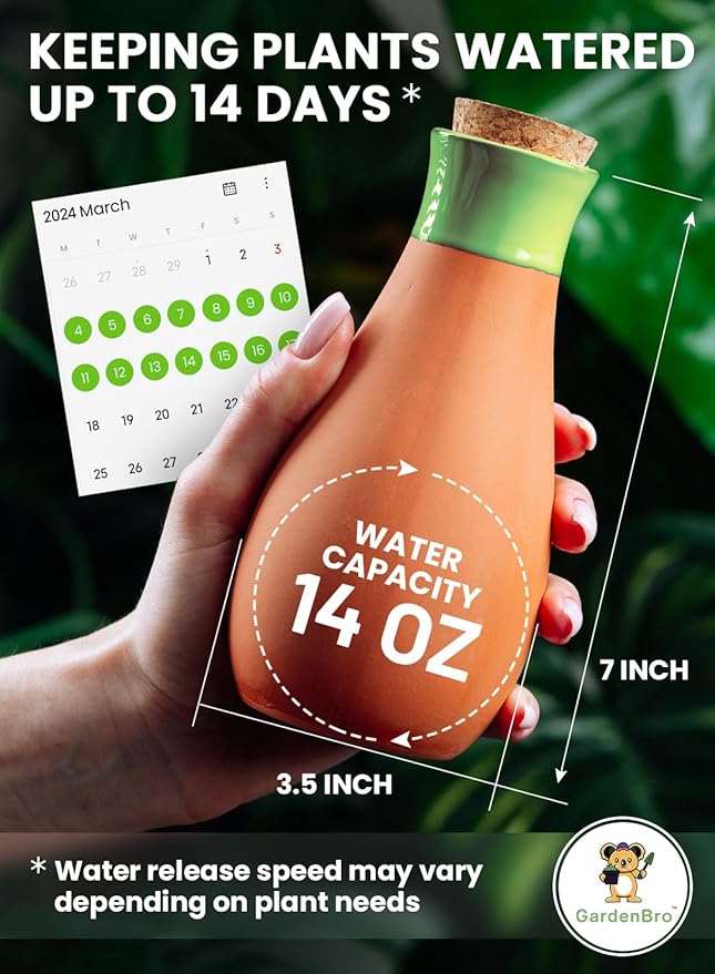 - 🌿 SOLUTION FOR TRAVELERS: Up to 14 Days Water Supply Keeps Plants Growing, Prevent Overwatering. Dependable Self Watering Terracotta Pot Waters Your Plants When Away.