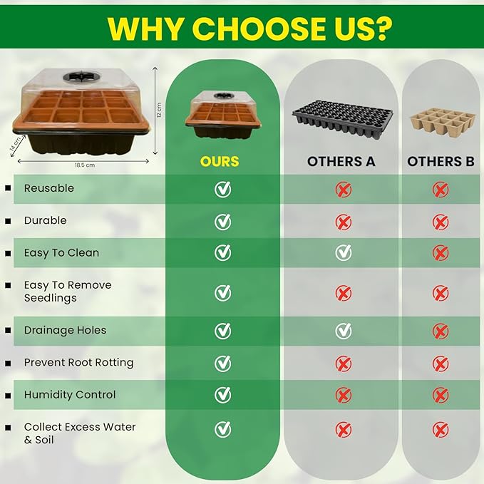 - VERSATILE PLANT HUMIDITY TRAY - Our seed trays seedling starter is suitable for a wide variety of uses, including seed starting, germination, seedling starting, succulent cuttings, or other plant clone propagation.