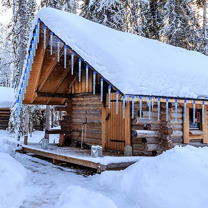 - Icicle Meteor Shower Lights: 16 icicles 384 SMD LED blue crystal ice falling lights are sure to bring brightness to your home outdoor Christmas decoration. Translucent crystal ice downpipe small columns lights, rows hung in the eaves, getting ready for Christmas day and winter