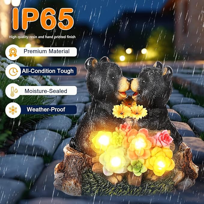 Solar Bear Garden Statues,Waterprrof Bear Outdoor Decor Resin Black Bear Figurine for Yard and Garden,Gifts for Mom, Women