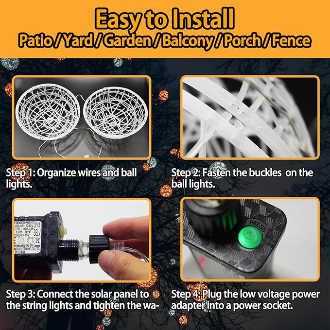 - 【IP44 Waterproof】IP44 plug in hanging christmas ball lights for tree adapt to rainy and snowy weather. Please keep the plugs dry.