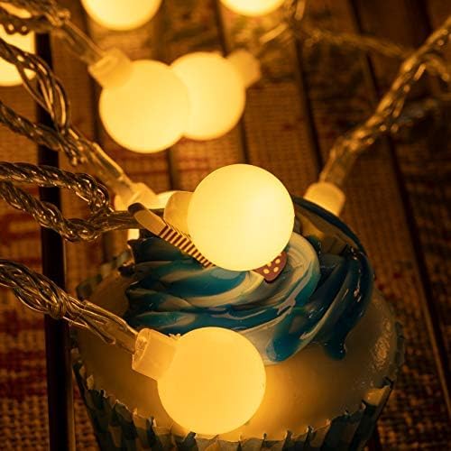 - High Quality: 200 LED 82 FT globe ball shaped string lights with solid construction plastic material, adapter powered. 29V low voltage string lights with UL 588 certified for safety use. Diameter of the bulb is 0.7''. Length between lights : 4 Inches, power line: 16.4ft. light string: 65.6ft, length totally: 82 ft approx.