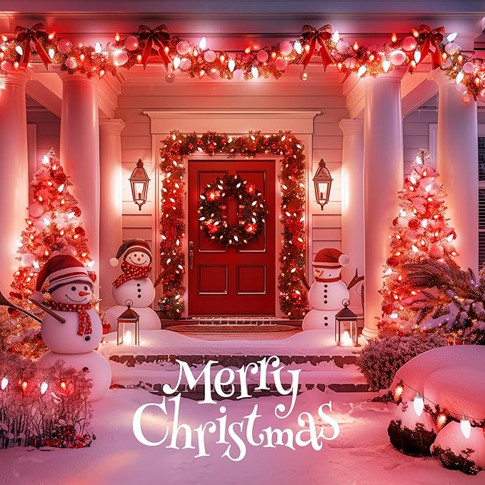 - End-to-End Connectable: Each Christmas light has an end-to-end connector, and you can connect up to 100 sets of these strings end-to-end, freely connecting according to your needs. Hang these fairy lights from your roof, porch, or fence, or wrap them around trees to create a romantic holiday atmosphere and enjoy a happy holiday season with your family.