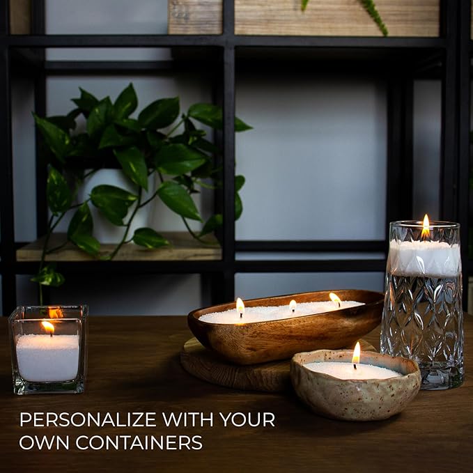 - Included Components : Glass container, 16 oz (450g) candle wax powder, 30 cotton wicks, Instruction booklet