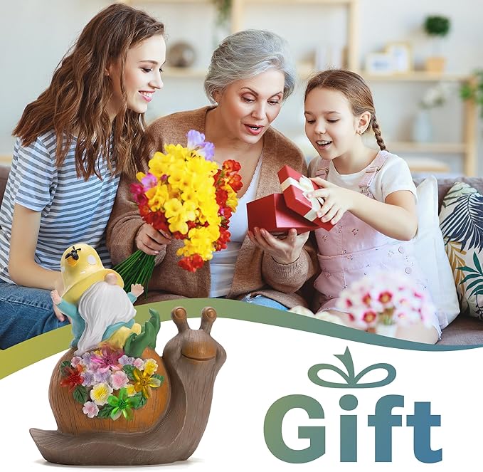 Solar Garden Outdoor Statue Snail Gnome with Succulent and LED Light - Patio,Lawn,Garden,Tortoise Statue for Patio,Unique Housewarming Gifts
