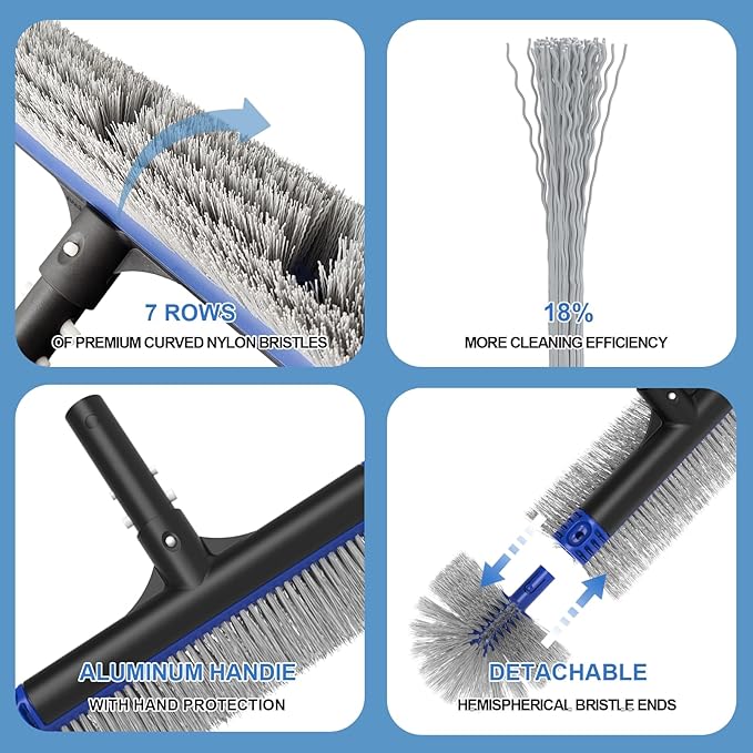 - UPGRADED 2-IN-1 BRUSH: Unique 3-piece design with detachable 360° brush heads for flexible use. The wavy bristles are safe for your pool yet tough enough to scrub away stubborn stains and debris from hard-to-reach corners in pools, spas, hot tubs, and yards