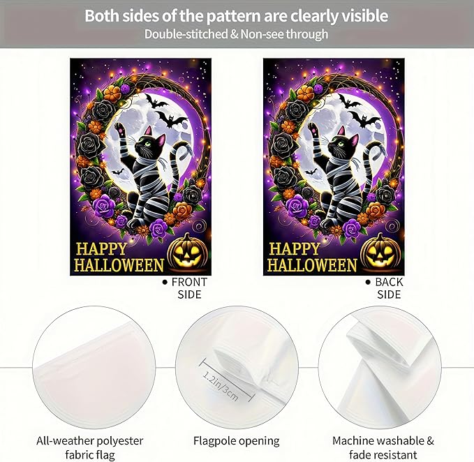 - Double Sided Flag: The Trick or Treat banner is printed on both sides, ensuring that the charming cat pattern and text can be seen from any angle. This bright and eye-catching flag will illuminate your yard, porch, or garden.