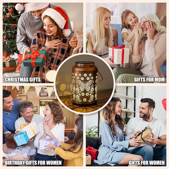 • Outdoor Decor, Garden Decor, Patio Decor, Balcony Decor, Yard Decor, Butterfly Outdoor Solar Lanterns are crafted from upgraded durable metal, The retro appearance, with gold copper color and hollow out metal veneer, gorgeous color, casts bright and warm light in darkness, accompanied by gorgeous and graceful patterns, adding a beautiful atmosphere to the surrounding environment. Add illuminated charm to a garden, patio, porch and outdoor tabletop