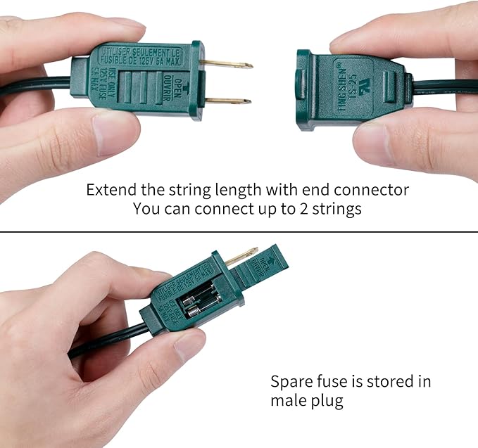 - 【𝐂𝐨𝐧𝐧𝐞𝐜𝐭𝐚𝐛𝐥𝐞 𝐋𝐢𝐠𝐡𝐭 𝐒𝐭𝐫𝐢𝐧𝐠𝐬】 Christmas lights can be connected end-to-end, and up to two strings of bulbs can be connected to cover a large area. C9 christmas lights outdoor is easy to install and connect, making it ideal for DIY indoor/outdoor use.