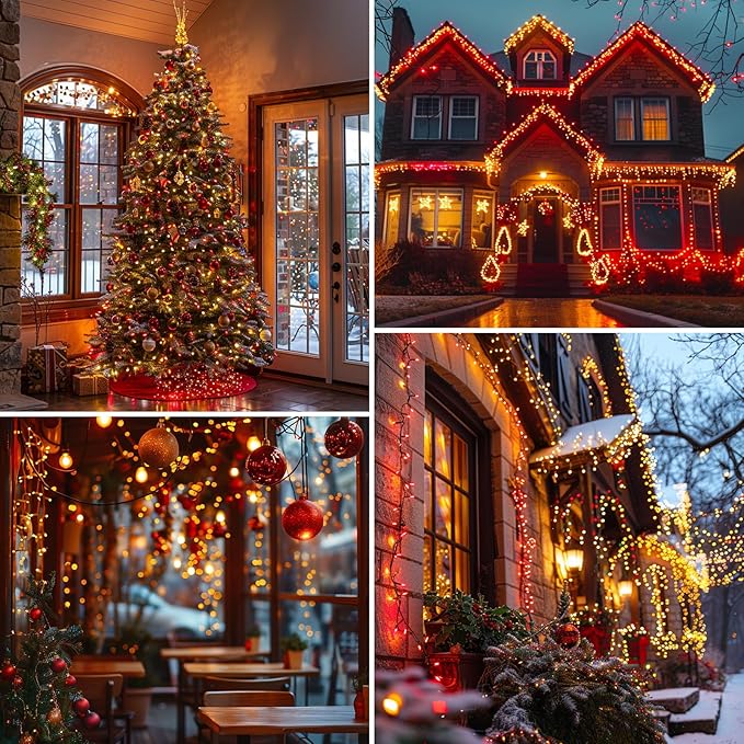 - 【𝐖𝐢𝐝𝐞𝐥𝐲 𝐔𝐬𝐞𝐝 𝐢𝐧 𝐒𝐜𝐞𝐧𝐚𝐫𝐢𝐨𝐬】 Christmas lights outdoor is perfect decoration for indoor and outdoor, Christmas tree, festival, patio, gazebo, flower stand or special events, creating a relaxing and romantic atmosphere.