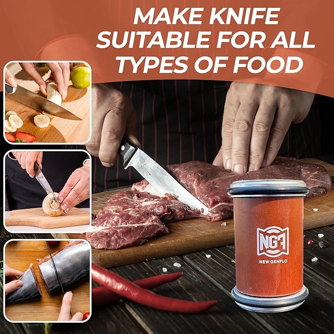- {SHARPENS ALL TYPES OF KITCHEN KNIVES} This versatile rolling sharpener is designed to work with chef knives, utility knives, paring knives, and other standard kitchen blades. Whether you’re cutting meat, vegetables, or herbs, it keeps your blades performing at their best. A perfect tool for home kitchens, commercial kitchens, and anyone serious about sharp, reliable cutlery.