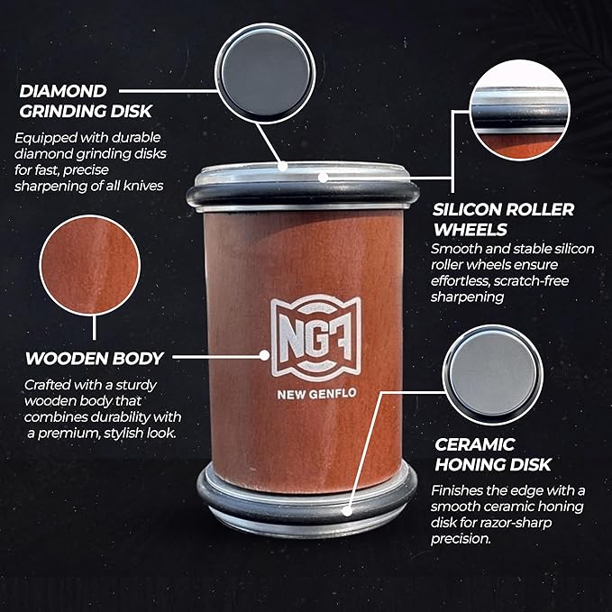 - {PRECISION ROLLING WHEEL FOR RAZOR SHARP RESULTS} Restore dull blades with ease using our high-performance rotating sharpening wheel. Engineered for consistency, this manual sharpener delivers precise, even sharpening every time. Ideal for home cooks or pros who want ultra-sharp knives fast—without the need for special skills or electric tools. Just a few passes and your blade is like new.