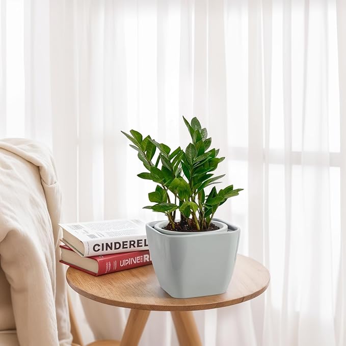 - Premium Quality Ceramic Planter: Crafted from top-grade ceramic material, this self watering pots is strong, long-lasting, and resistant to chips or cracks. The inner pot, made of absorbent dolomite clay, supports water delivery to the plant, while the outer pot is coated with a durable porcelain glaze that stores water