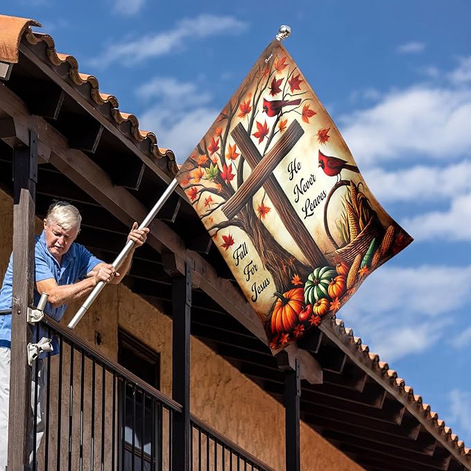 - FALL CHRISTIAN FLAG – Celebrate the season of faith and harvest with Christian flags for outside. This Christian flag blends autumn beauty with devotion, making it a meaningful addition to fall decorations for home. Display gracefully in garden decor for outside, outdoor decor for patio, or outside decorations for yard.