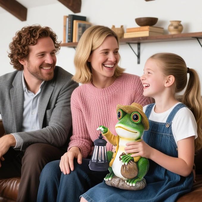 - Frog garden decor :This cute frog statue is carrying a warm white light, which illuminates darkness.It can enhance your cheerful mood,thus adding a great atmosphere to the environment.