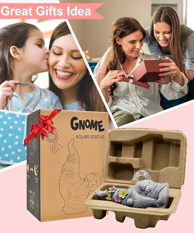 Qeeman Garden Decor Gnome Blow Bubbles: Outdoor Decorations Yard Art Statues for Patio Balcony Lawn Figurine - Gifts for Mom Grandma