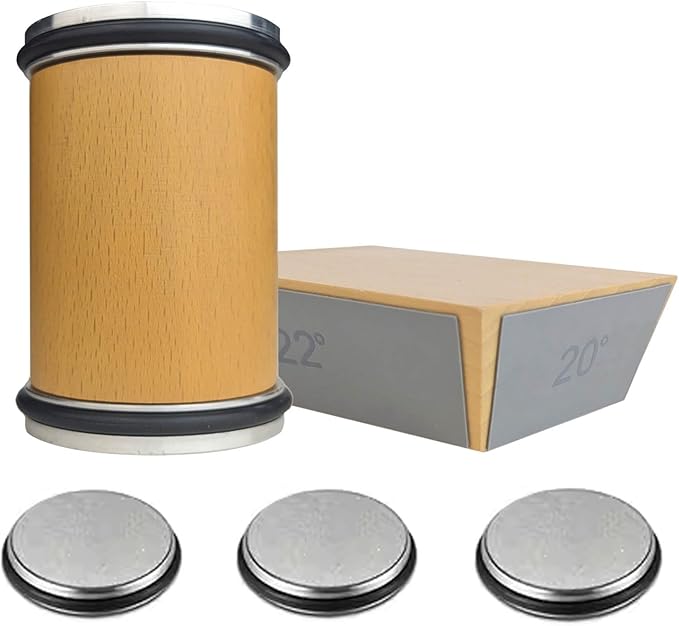- 【Premium wood & Strong magnets】Rolling Knife Sharpener Height 81mm/3.18 inches, Width 53 mm/2.08 inches. 4-Angle Magnetic Base is Length 92mm/3.62 inches, Width 69mm/2.71 inches, Height 30mm/1.18 inches. Each product is made of rubber wood. The magnetic support to keep your knife firmly attached to the base without moving