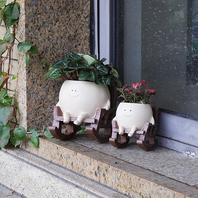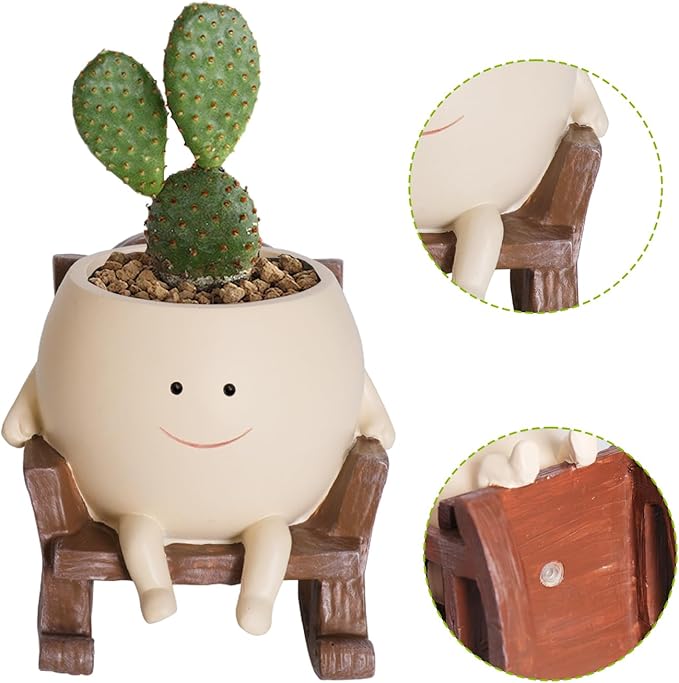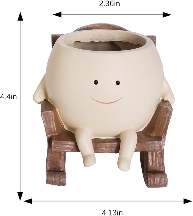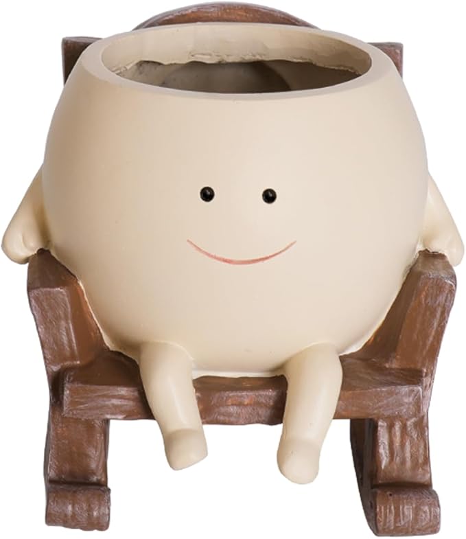 Rocking Chair Face Resin Planter Pot with Drainage Cute Flower Pots for Succulents Plants Live Indoor Outdoor Planters for Houseplants Gift Small (Small)
