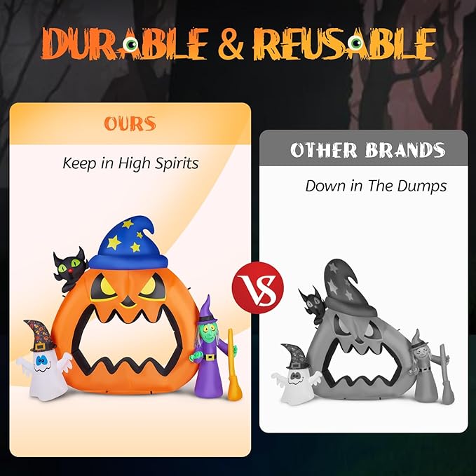 - Spooktacular Size - Standing tall at 6.9ft, this Inflatable Pumpkin Halloween Decoration is sure to be the showstopper in your yard, making ghosts and goblins green with envy!