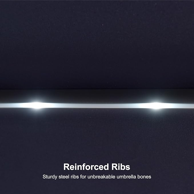 - Sturdy Construction: This outdoor umbrella features a 1.9-inch diameter powder-coated main pole, ensuring superior corrosion resistance and long-lasting durability. Additionally, the 12-rib design greatly enhances stability and wind resistance