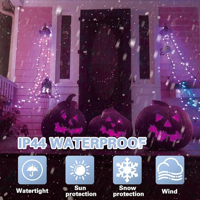 - Waterproof Outdoor String Lights: Our 100 LED waterproof string light has passed IP44 waterproof certification, it can resist water, perfect for indoor outdoor decorations, don't worry about using it in heavy rain and heavy snow, but warm tips please protect the plug.