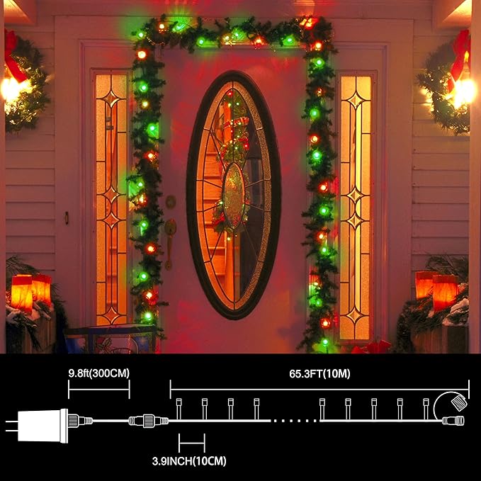 - Christmas Decorations String Lights: 33FT Christmas string lights with 100 red and green LED bulbs. Each Christmas lights has end-to-end connection, you can connect up to 8 sets together to illuminate a wider range.